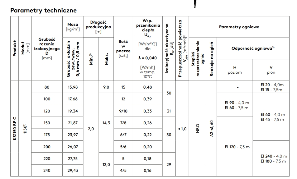 Dla płyt izolowanych wełną mineralną dostępne są grubości płyt od 80 do 240mm.